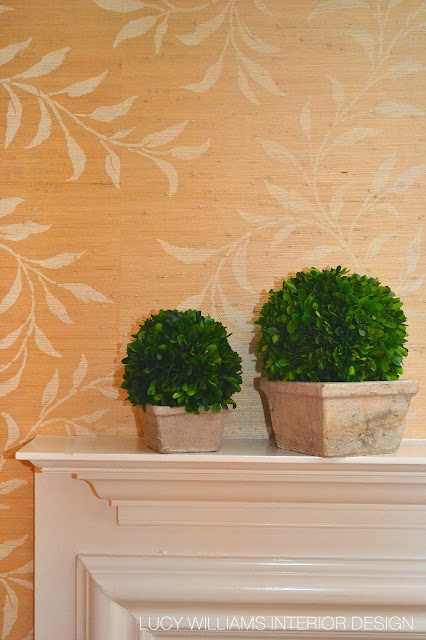 WE STARTED WITH THE PRINTED GRASSCLOTH TO PROVIDE DEPTH AND TEXTURE. THE HOMEOWNERS REALLY WANTED A CENTER TABLE FOR THE FOCAL POINT. WE DECIDED TO GO WITH A CUSTOM MADE HEXAGON SKIRTED TABLE IN A VIBRANT GREEN SILK.....AND WOW, THE FABRIC'S REFLECTIVE QUALITY AND COLOR INTENSITY CERTAINLY ADDS LIFE TO THIS DARKER SPACE!